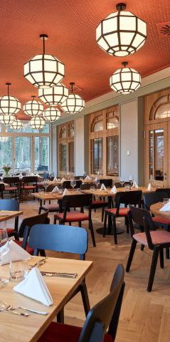 Gestaltung des Restaurant- und Festsaalbereichs unter Berücksichtigung unterschiedlichster Bestuhlungsmöglichkeiten für Events und Anlässe.